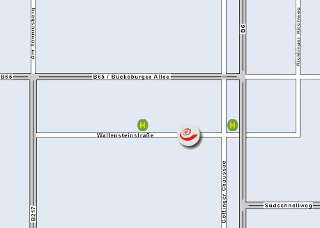 Sie erreichen uns über die Stadtbahnlinien 3, 7, 17 Haltestellen Wallensteinstraße oder Bartold-Knaust-Strasse.